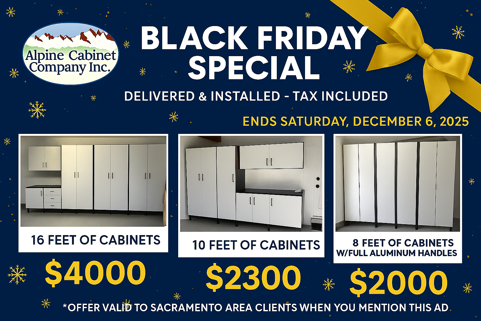 At Alpine Cabinet Company Inc., we take pride in providing exceptional garage cabinets to our customers. We would be grateful if you could share your thoughts about our business with others. Your feedback helps us improve and helps others make informed decisions. Please take a moment to leave a review of Alpine Cabinet Company Inc. and let others know what you think.